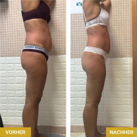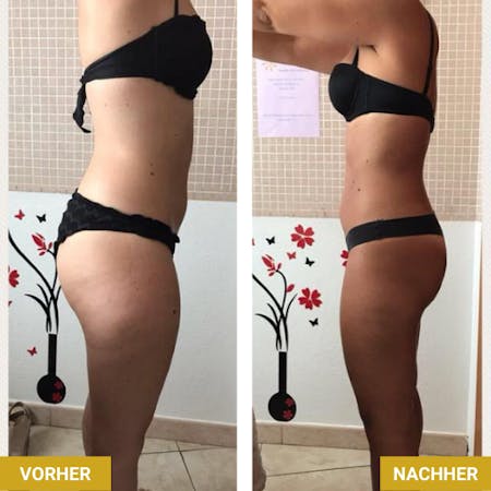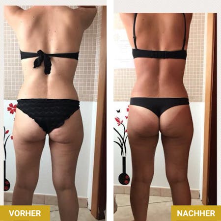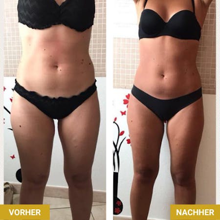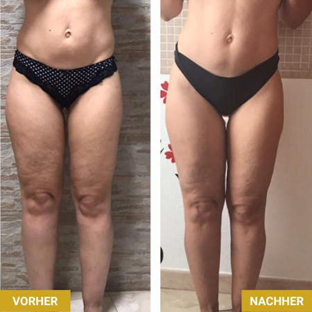Bereits nach den ersten Behandlungen wird eine sichtbare Umfangsreduktion sichtbar.